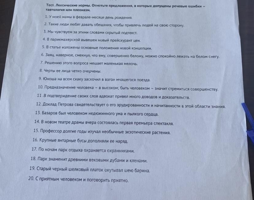 Отметьте предложения, где допущены ошибки - тавтология или плеоназм.