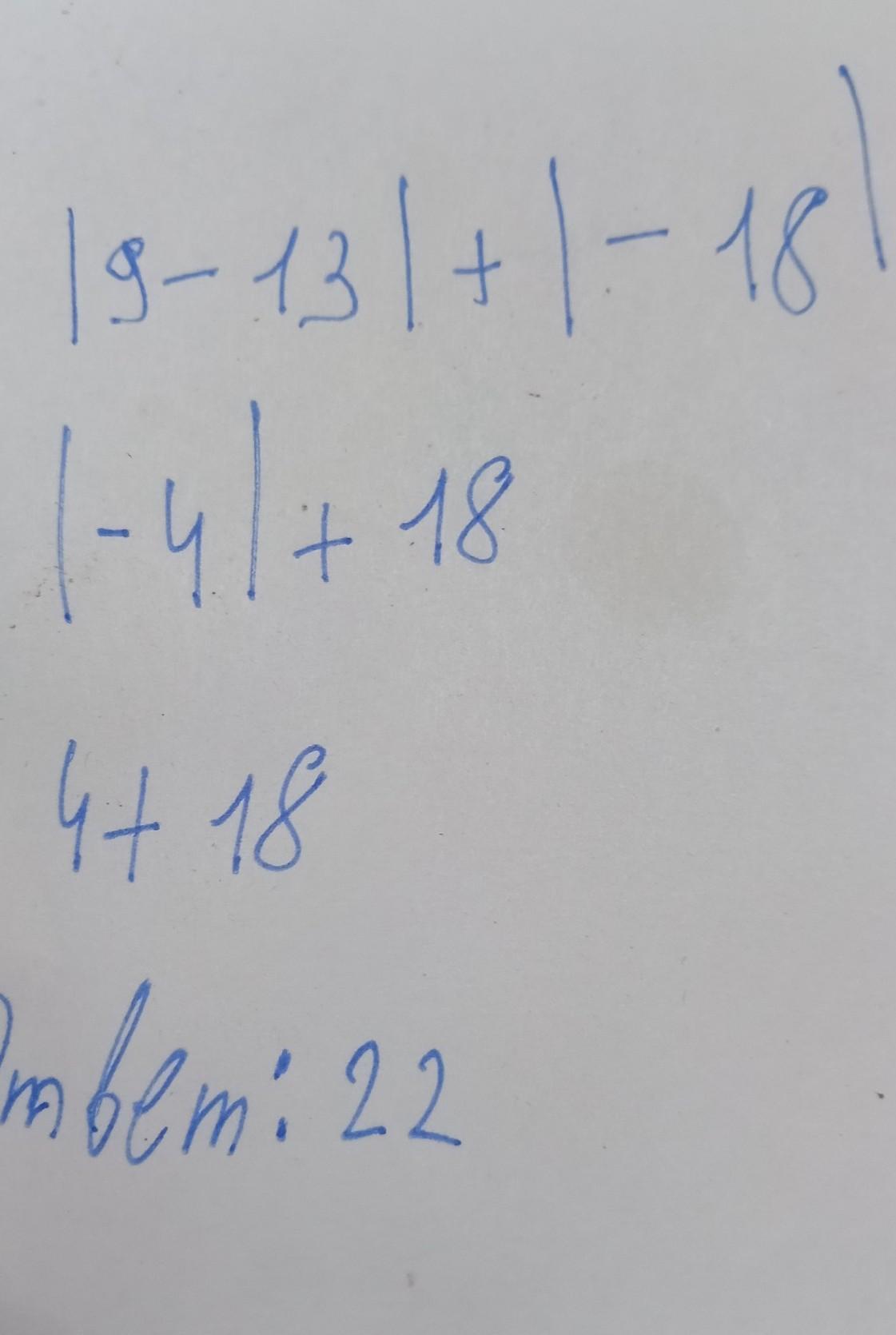 а) | 9 - 13 | + | - 18 | = | - 4 | + | - 18 | = 4 + 18 = 22