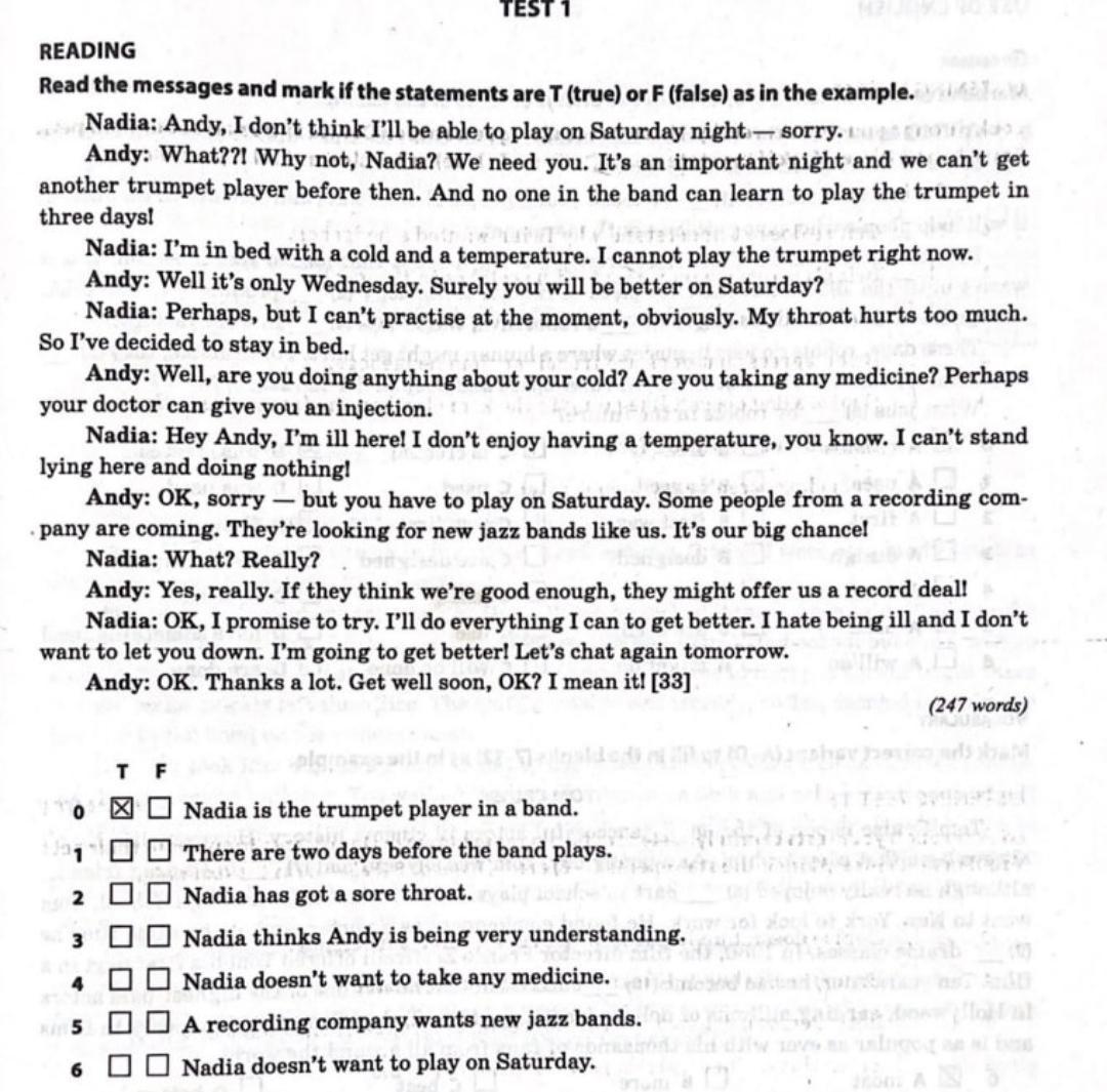 - F (False) - There's no indication that Nadia doesn't want to take any medicine.