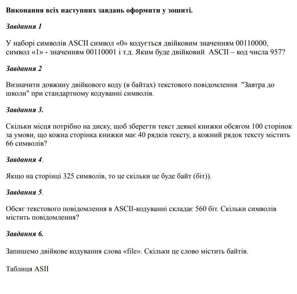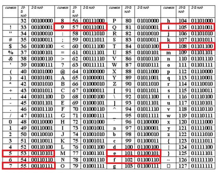 ASCII 1 символ кодируется 1 байт (8 бит)