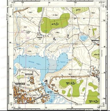 Визначити географічні та прямокутні координати озера Чарівне