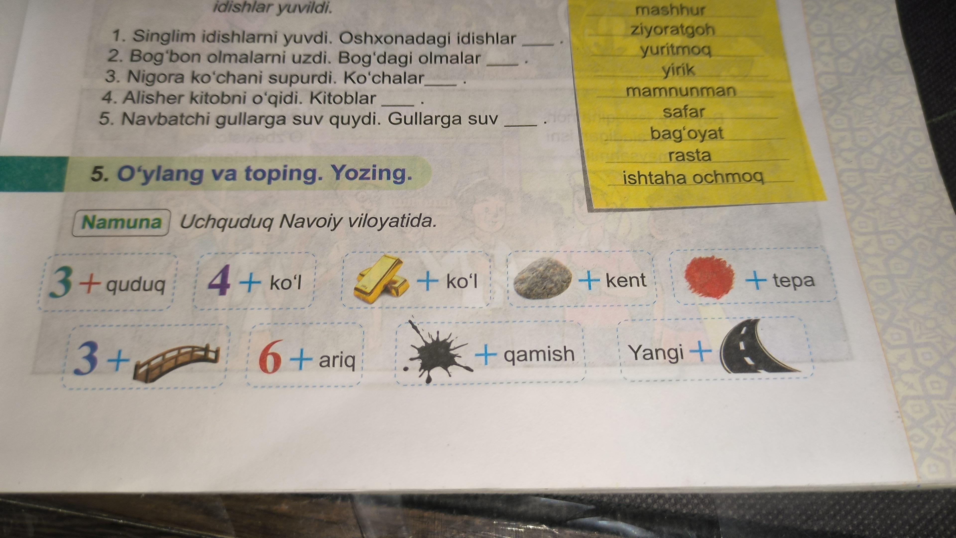 uchquduq Novoiy viloyati; to'rtko'l Qoraqolpog'iston Respublikasi; oltinko'l Andijon viloyati; toshkent Toshkent viloyati; qiziltepa Navoiy viloyati; uchko'prik Fargʻona viloyati; oltiariq Fargʻona viloyati; qoraqamish Toshkent shahri; yangiyo'l Toshkent viloyati