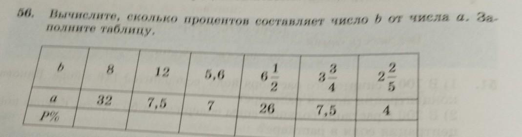 56. Вычислите, сколько процентов составляет число б от числа а. За. полните таблицу. желательно фото с таблицой