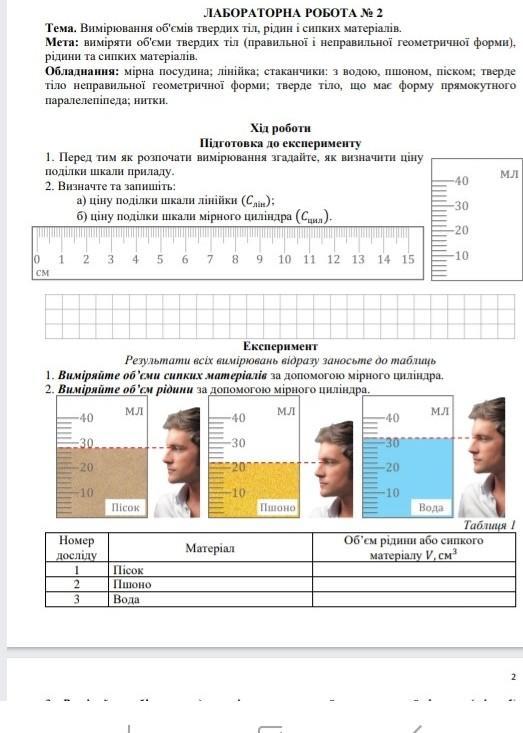 7 Клас CM ЛАБОРАТОРНА РОБОТА № 2 Тема. Вимірювання об'ємiв твердих тіл, рідин і сипких матеріалів.