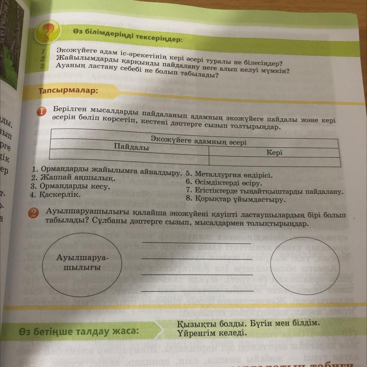 Берілген мысалдарды пайдаланып адамнын экожүйеге пайдалы және керi
