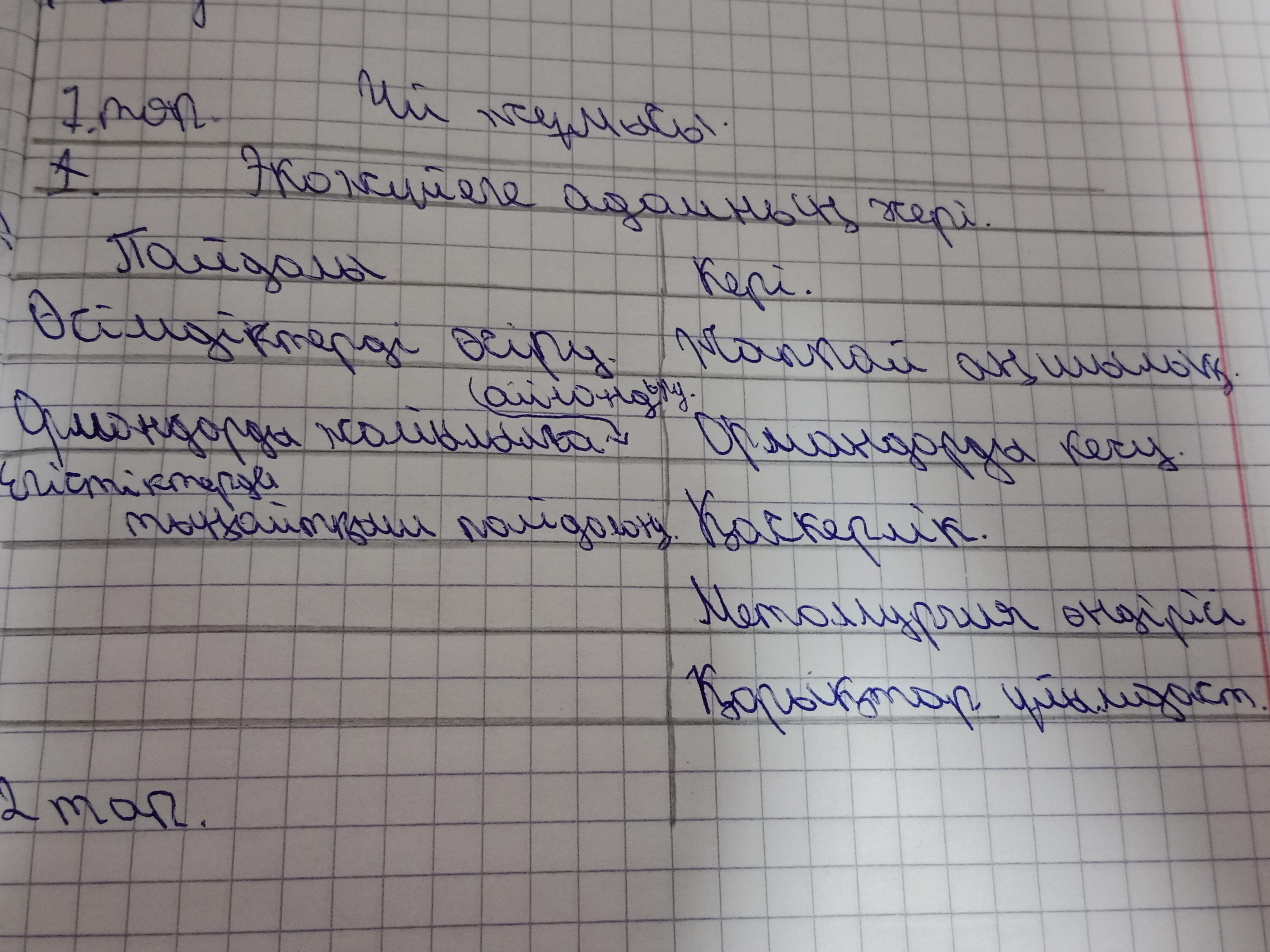 әсерiн бөліп көрсетіп, кестенi дәптерге сызып толтырындар.