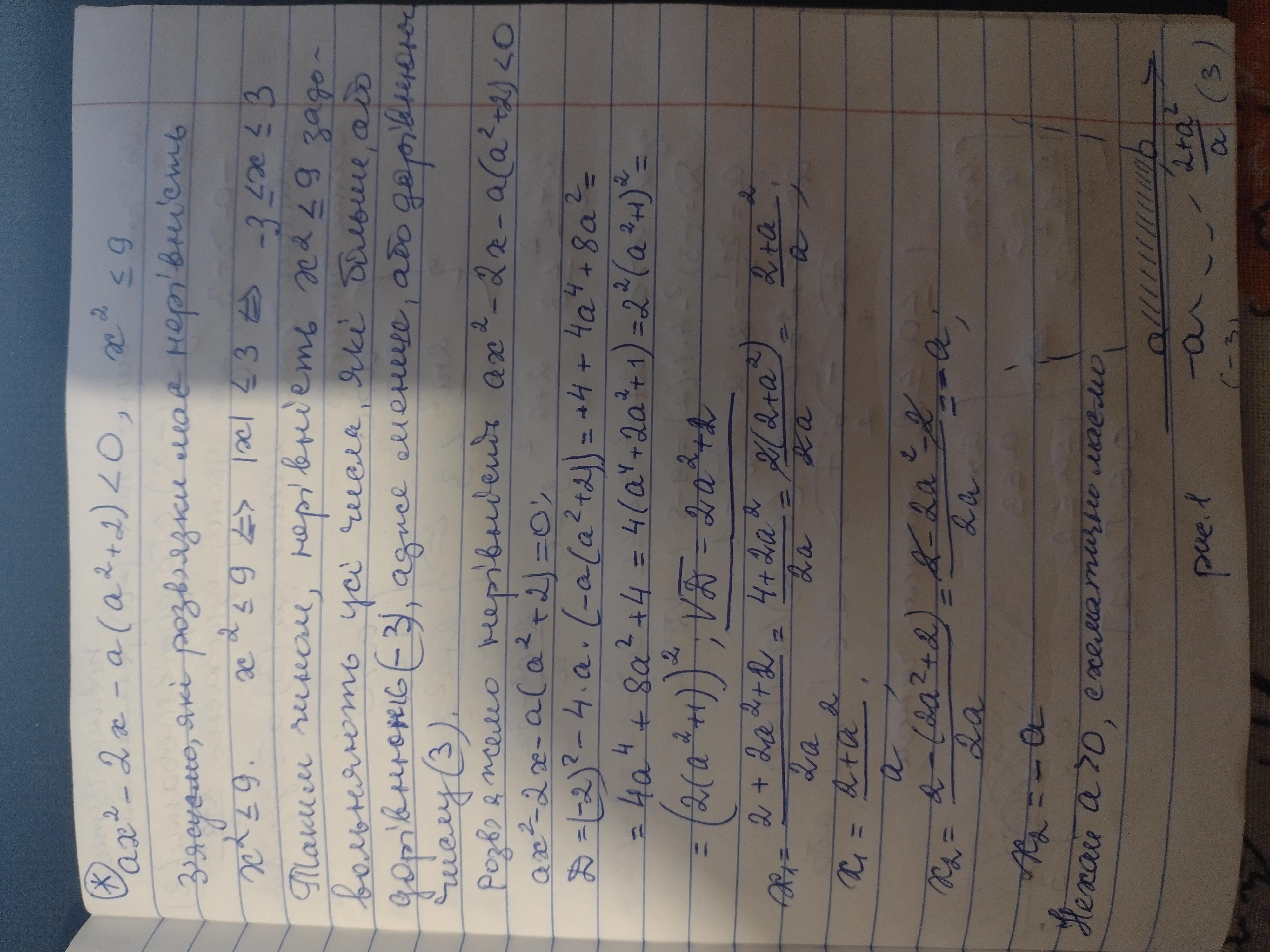 ах² - 2х - а (а² + 2) < 0 задовольняють нерівність х^2<= 9?