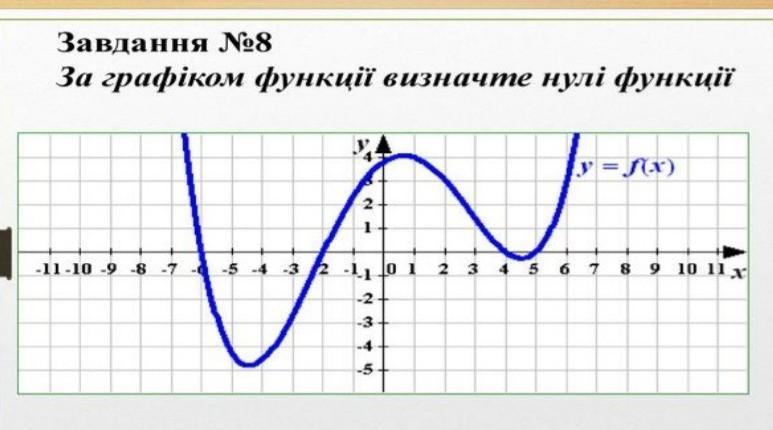 Нулі функції це точки де графік перетинає вісь Х, звідси й відповіді