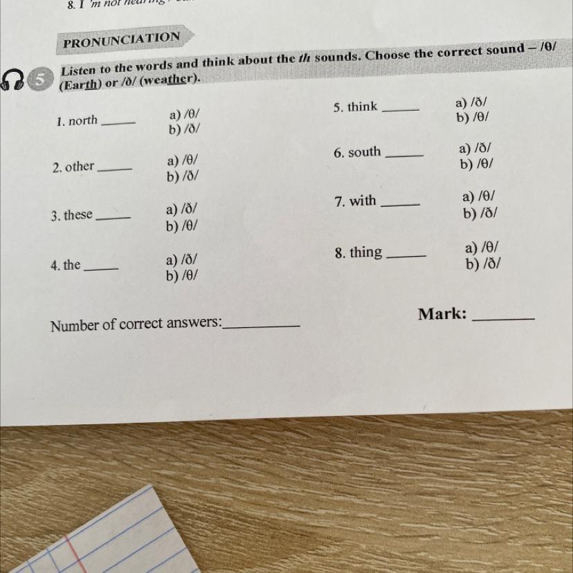 Listen to the words and think about the th sounds. Choose the correct sound - /0/