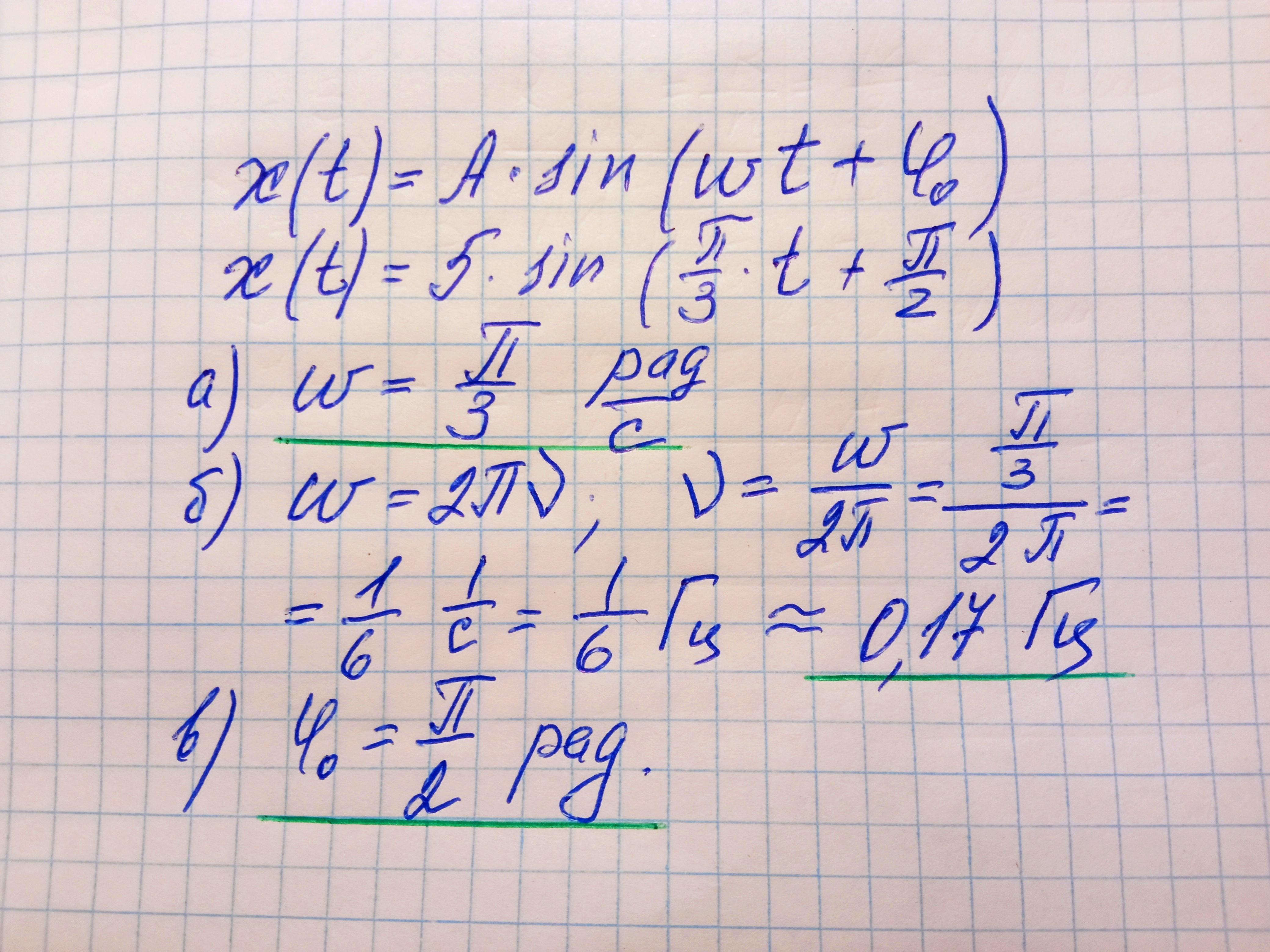 Гармоническое колебание описывается уравнением х=5 sin (п/3 t+ п/2)