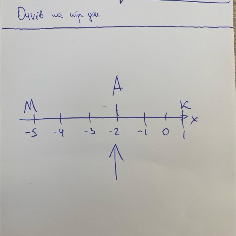 На координатній прямій позначенi точки М(-5), К(1), та А. Знайдіть координату точки А, якщо А-середина відрізка МК.