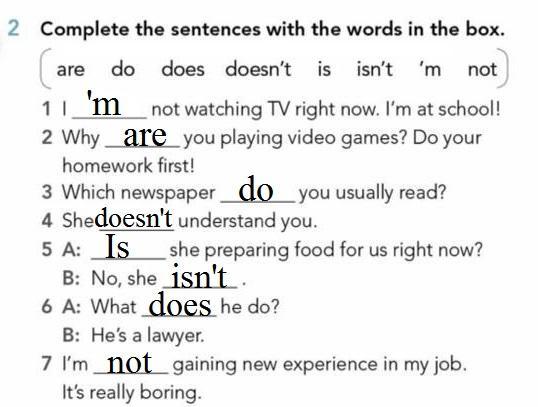 1. Я не смотрю телевизор прямо сейчас. Я в школе.
