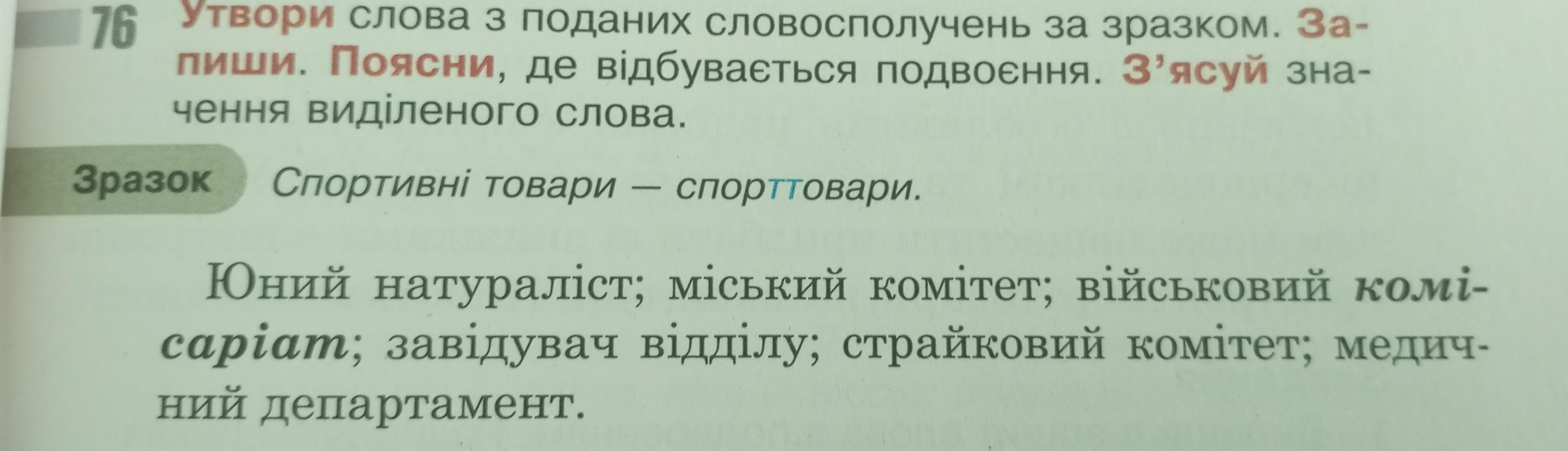 Вправа 76 утвори слова з поданих словосполучення - це зразком запиши пояснити і відбувається подвоєння значення виділеного слова