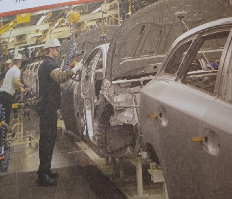 Берілген сөздердi тiрек етіп, суретте көрсетілген "Азия АВТО" зауыты туралы шағын мақала жазыңыздар.