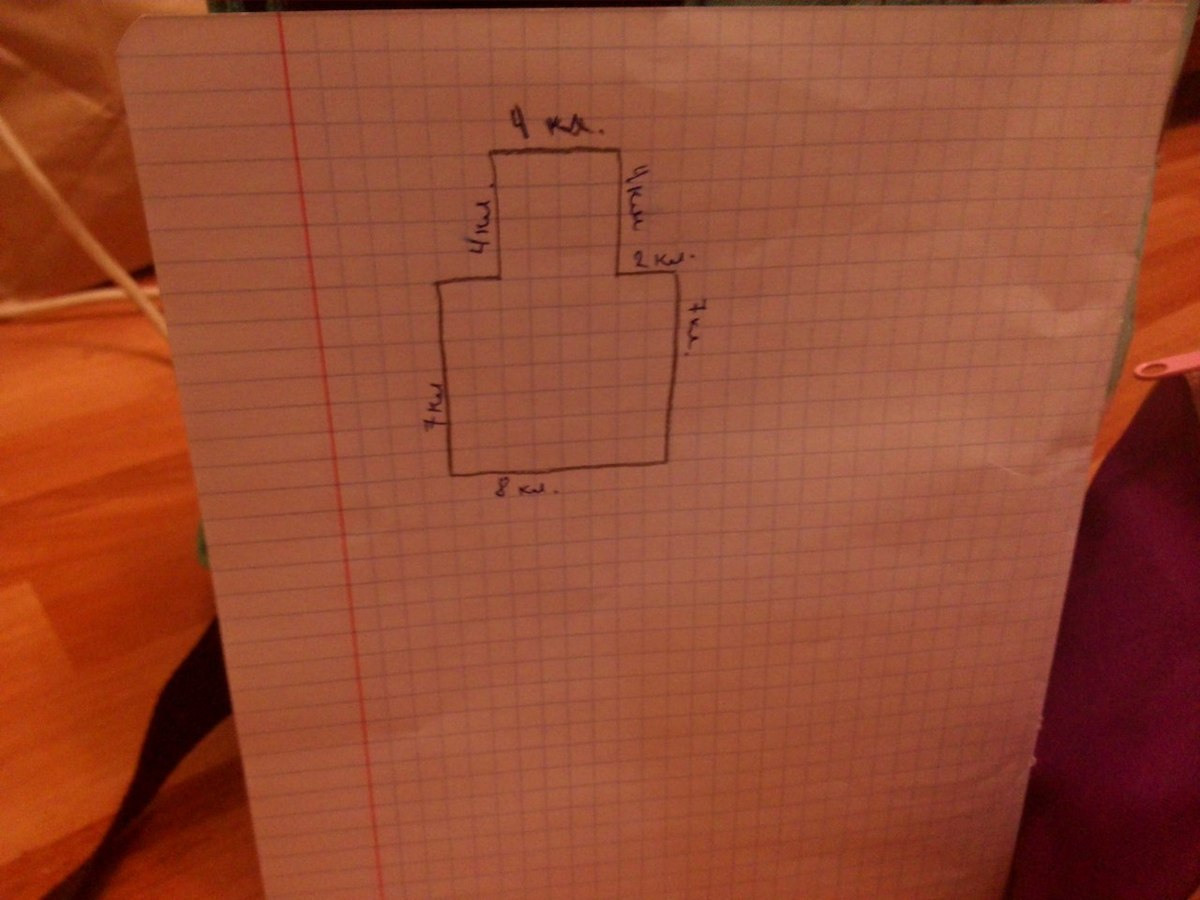 Разобъем фигуру на две части: прямоугольник 7х8 и квадрат 4х4.