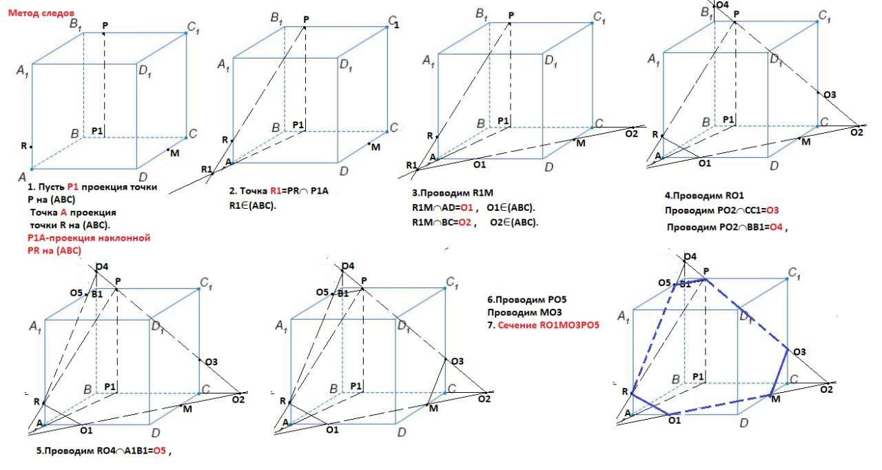 11) Построить сечение куба ABCDA1B1C1D1 плоскостью проходящей через точки P,R,M.