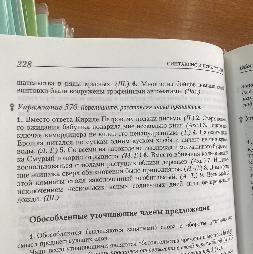 • Упражнение 370. Перепишите, расставляя знаки препинания.
