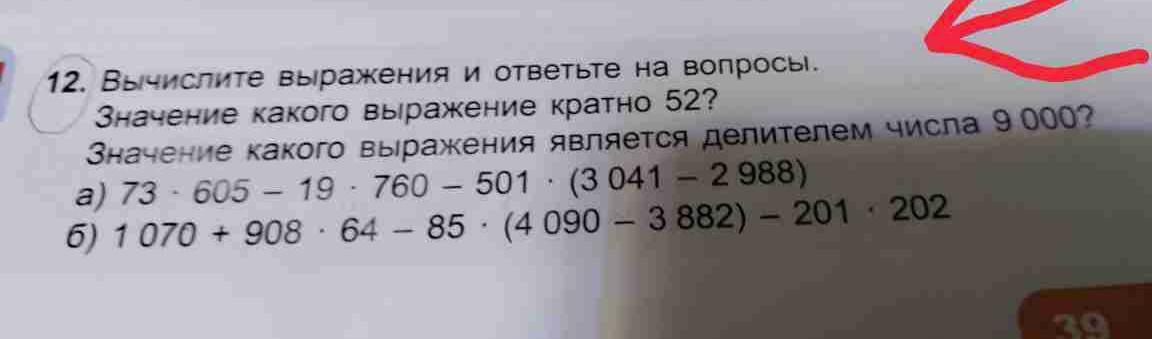 Вычислите выражения и ответьте на вопросы. Значение какого выражение кратно 52? Значение какого выражения является делителем числа 9 000?