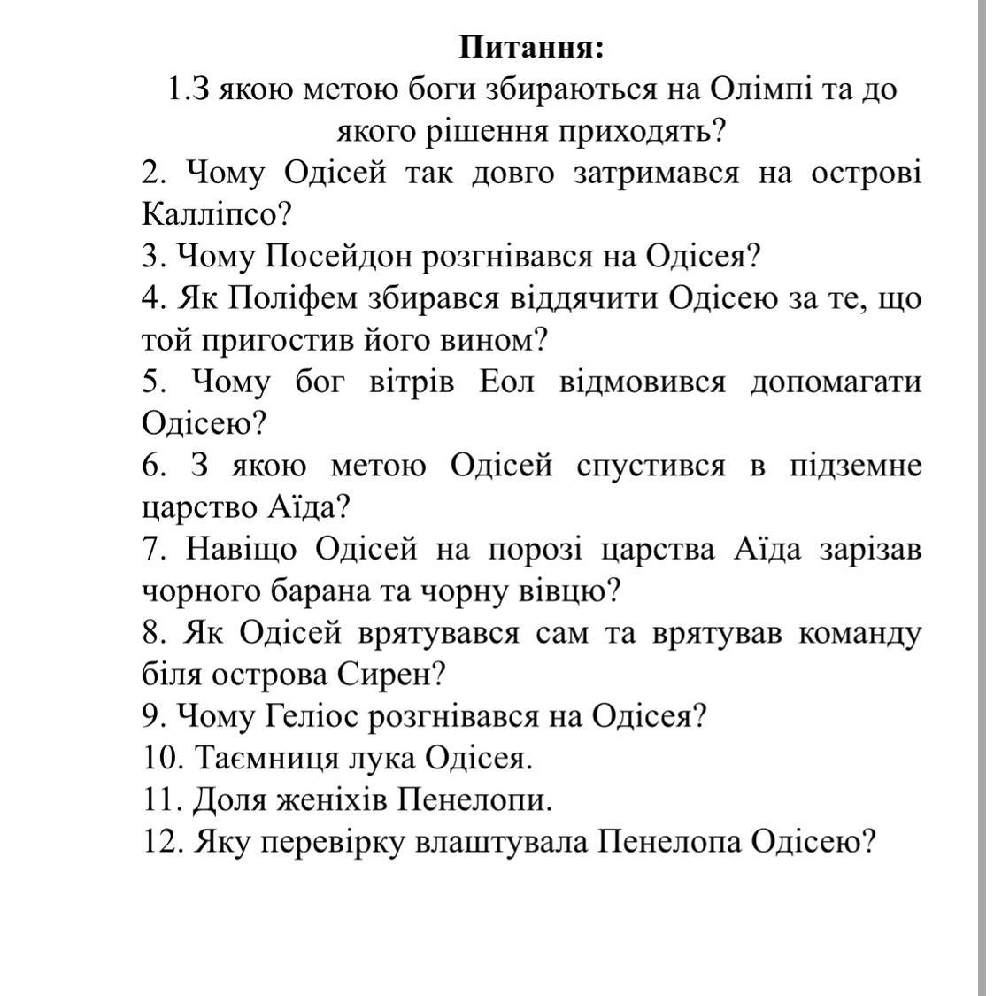 4. Поліфем збирався віддячити Одісею за те, що він пригостив його вином, використавши його слабкість до алкоголю, і коли Киклоп заснув, Одісей вонзив йому запалений дерев'яний кол у щоку.