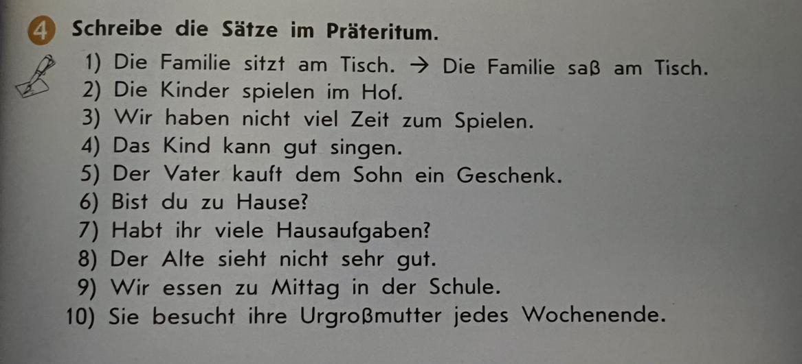 Die Kinder spielten … 2. hatten 3. konnte 4. kaufte 5. warst 6.hattet 7. sahen 8.aßen 9. besuchten не уверена что все идеально правильно .