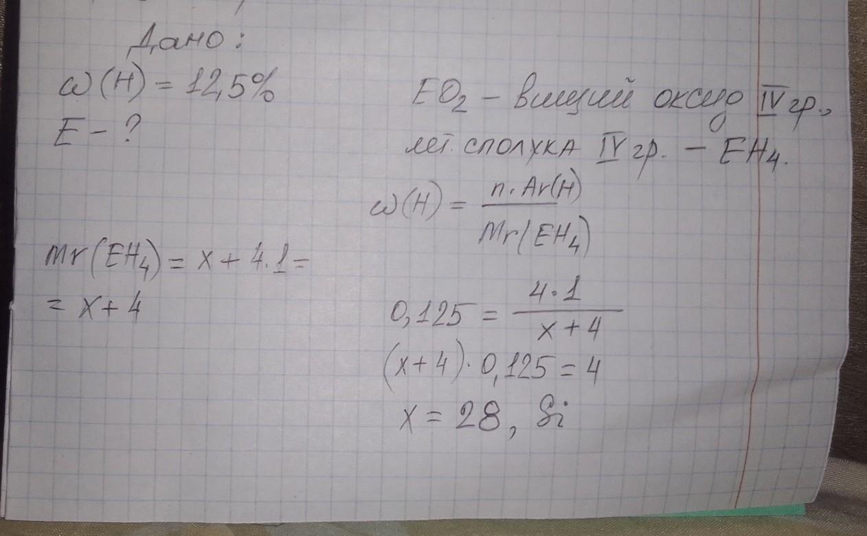 Елемент Е утворює летку сполуку з Гідрогеном у якій масова частка Гідрогену 12,5%. Вищий оксид цього елемента має склад ЕО2. Визначте елемент. Напишіть його електронну конфігурацію та вкажіть загальну кількість р-електронів.