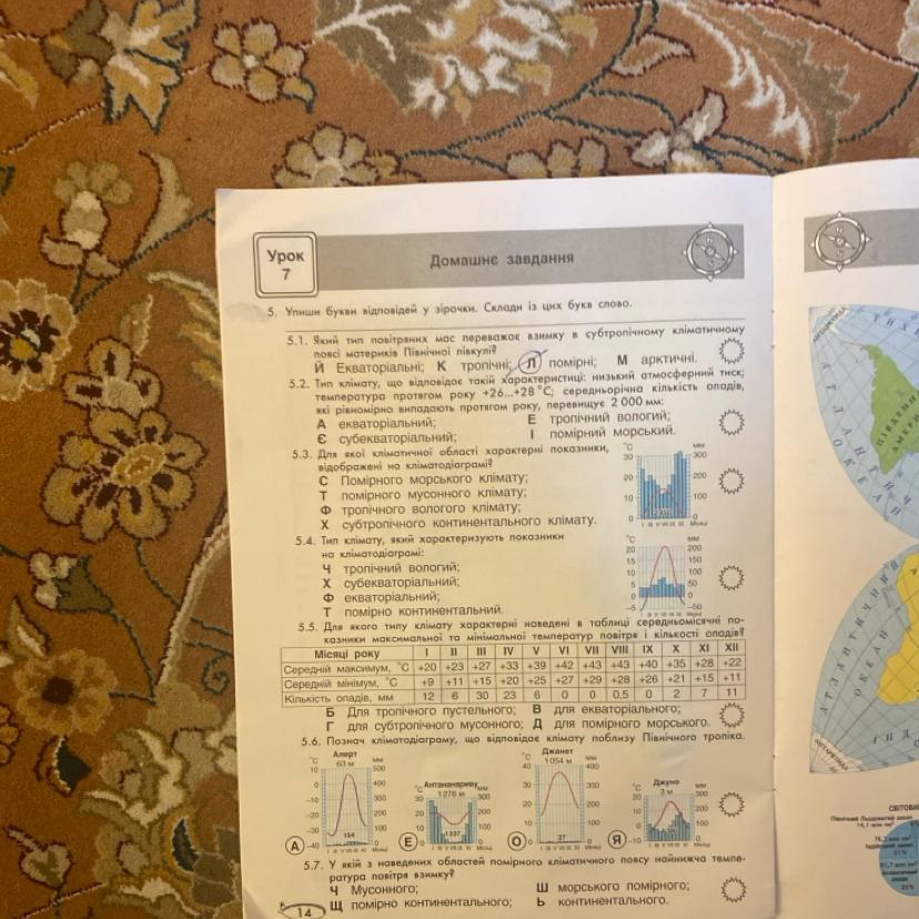 5.1. Який тип повітряних мас переважає взимку в субтропічному кліматичному поясі материків Північної півкулі?