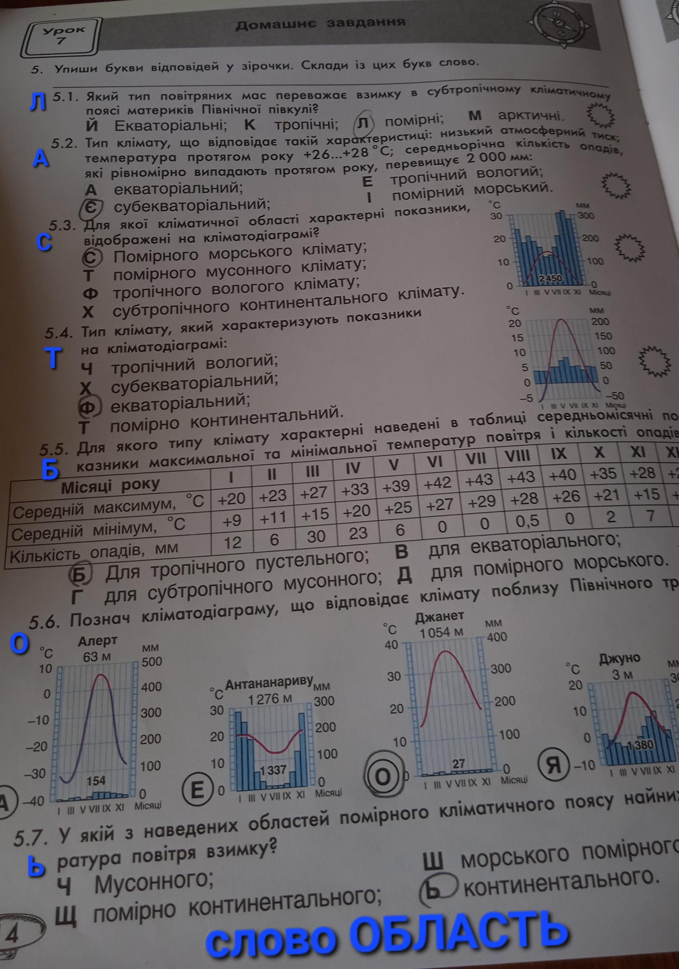 5. Упиши букви відповідей у зірочки. Склади із цих букв слово.