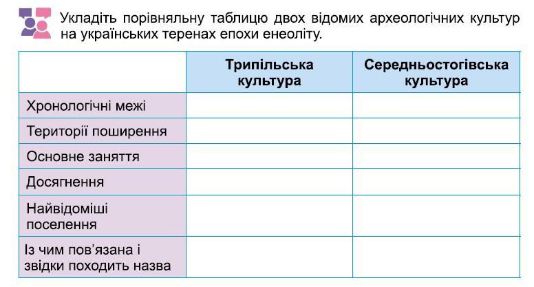 Укладіть порівняльну таблицю двох відомих археологічних культур