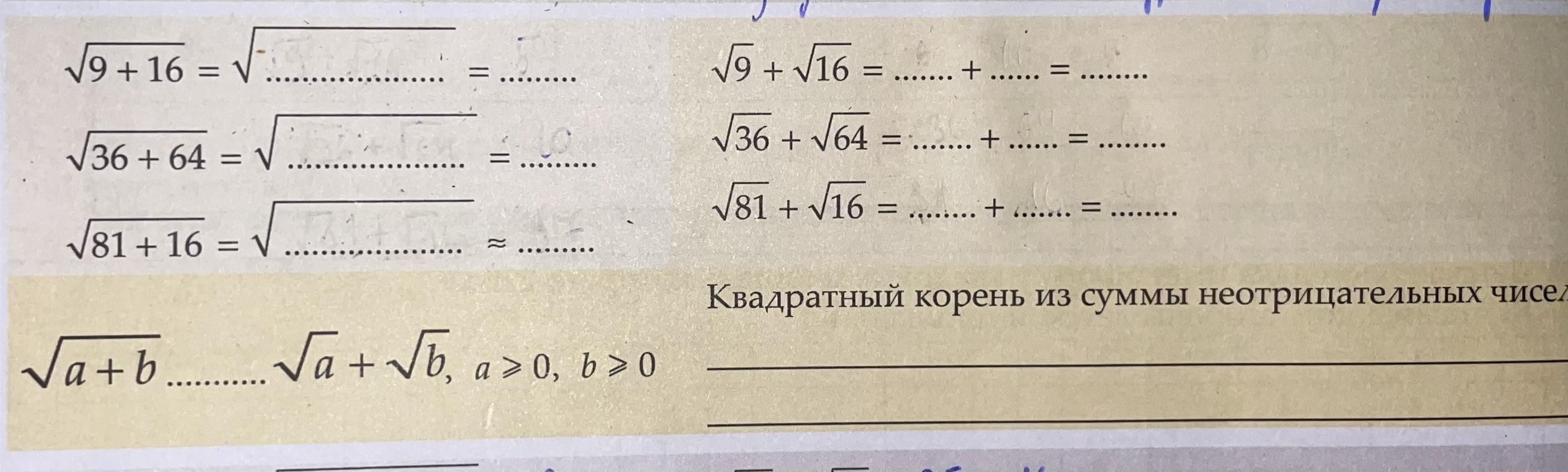 √81+16 = √97 ≈ 9,85 < √81 + √16 = 9 + 4 = 13
