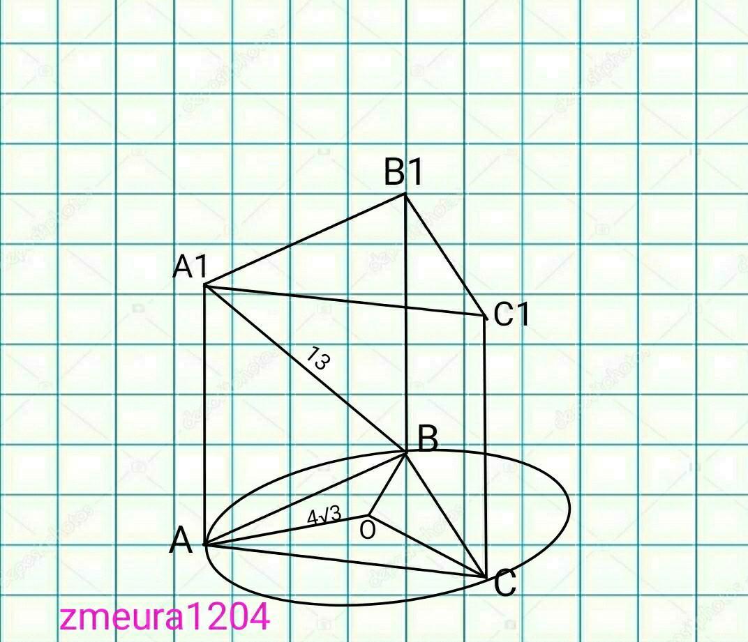 У правильній трикутній призмі радіус описаного навколо основи ко ла дорівнює 4/3 см. Обчисліть висоту призми, якщо діагональ бічної гра ні дорівнює 13 см.