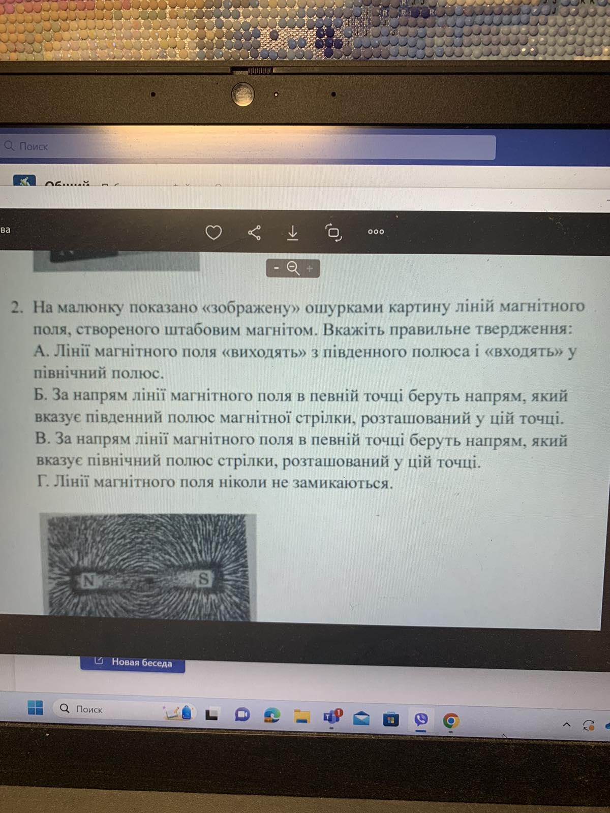 В. За напрям лінії магнітного поля в певній точці беруть напрям, який вказує північний полюс стрілки, розташований у цій точці.