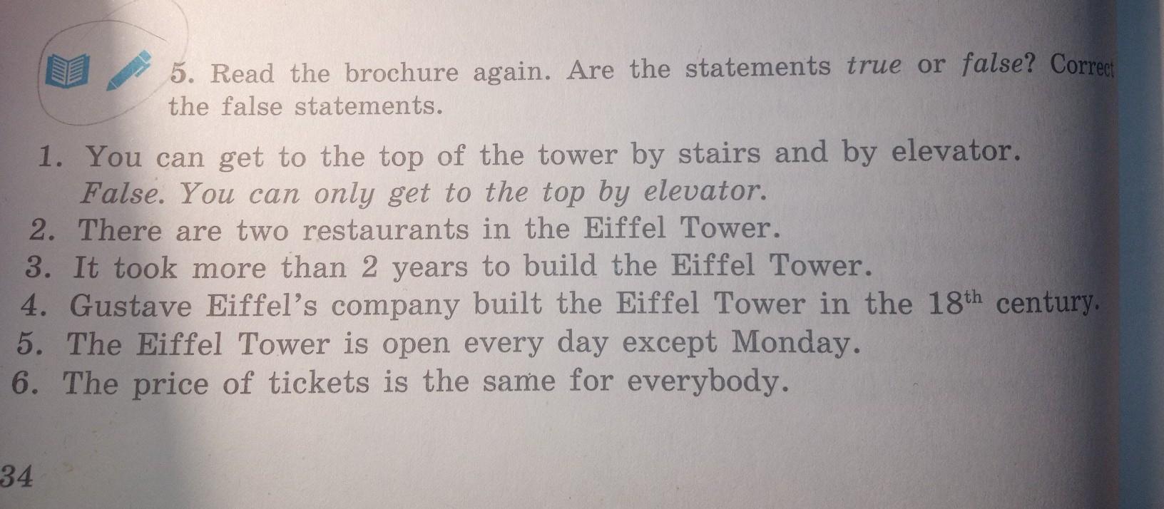 1. Corrected: False. You can get to the top by stairs and by elevator.