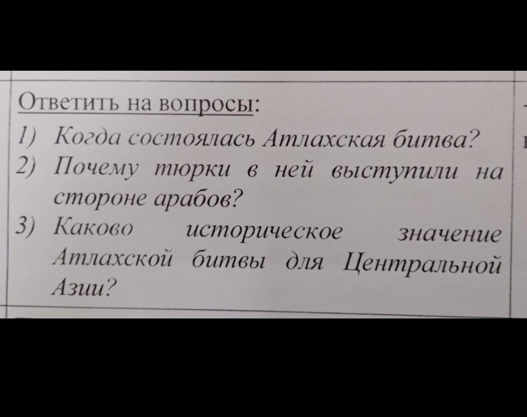 Атлахская битва состоялась в 751 году.Тюрки присоединились к арабской стороне в Атлахской битве из-за политических и военных союзов. На тот момент Китайская династия Тан установила контроль над Центральной Азией, и арабы и тюрки объединились против китайцев в попытке сбросить их власть. Таким образом, тюрки и арабы объединились из-за общих интересов в сопротивлении китайскому вторжению.Атлахская битва имеет большое историческое значение для Центральной Азии, так как она привела к ослаблению китайской власти в регионе. Последствия битвы включали в себя значительные изменения в политической картине Центральной Азии и способствовали распространению ислама в этом регионе. Также битва подчеркивает важность событий в Центральной Азии в мировой истории, так как она стала частью великого хода истории, включая перемещение культур и влияния между Востоком и Западом.