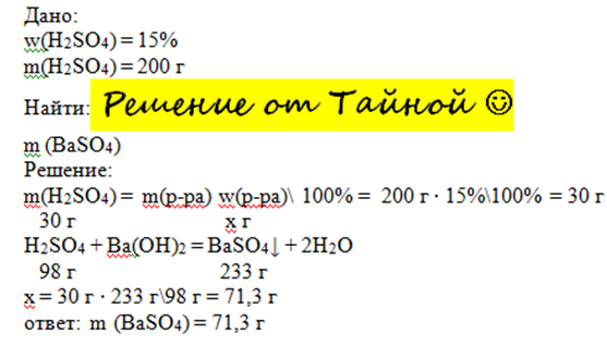 К 200г 15% раствора серной кислоты добавили гидроксид бария. Найдите массу образовавшегося осадка.