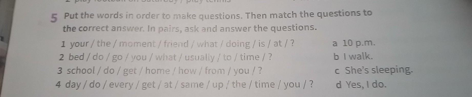 1. what is your friend doing at the moment? c. She is sleeping