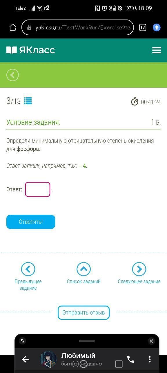 Ответы1. Минимальная степень окисления фосфора - -3 (примерами могут стать такие соединения как: PH3, Na3P, Mg3P2, AlP), максимальная степень окисления фосфора - +5(примерами могут стать такие соединения как: P2O5, H3PO4, Na3PO4, P2S5). Следовательно, верный ответ: 4) -3 и +5.