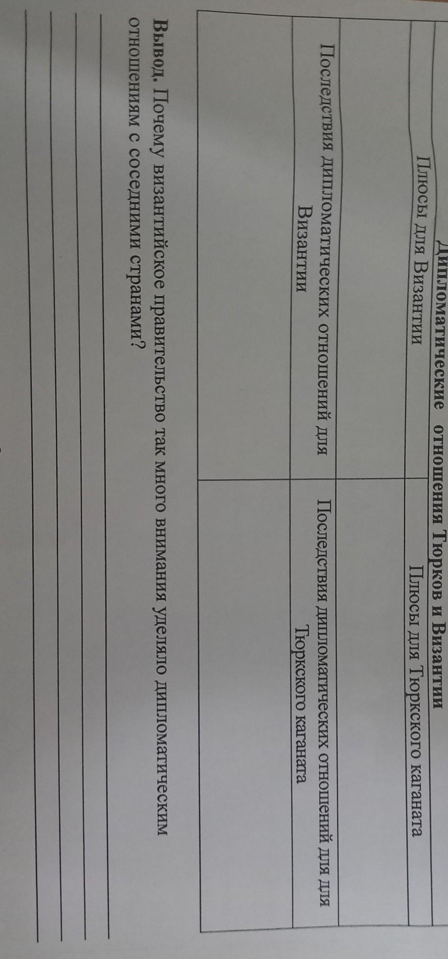 Дипломатические отношения Тюрков и Византии Плюсы для Византии Плюсы для Тюркского каганата Последствия дипломатических отношений для Последствия дипломатических отношений для для Византии Торкского каганата. Напишите вывод.