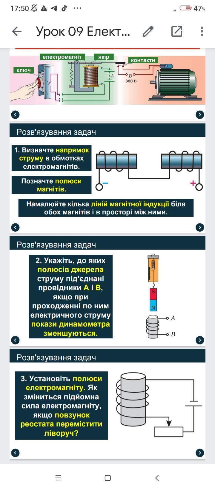 Укажіть до яких полюсів джерела струму під'єднані провідники A і B, якщо при проходжені по ним електричного струму покази динамометра зменшуються