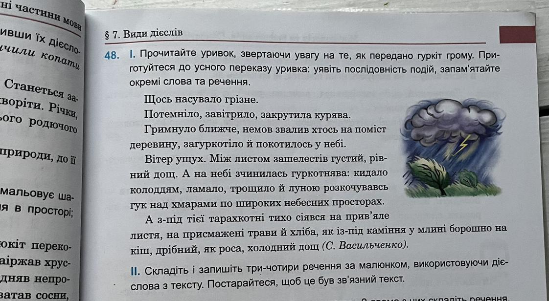 ||. Складіть і запишіть три-чотири речення за малюнком, використовуючи дієслова з тексту.