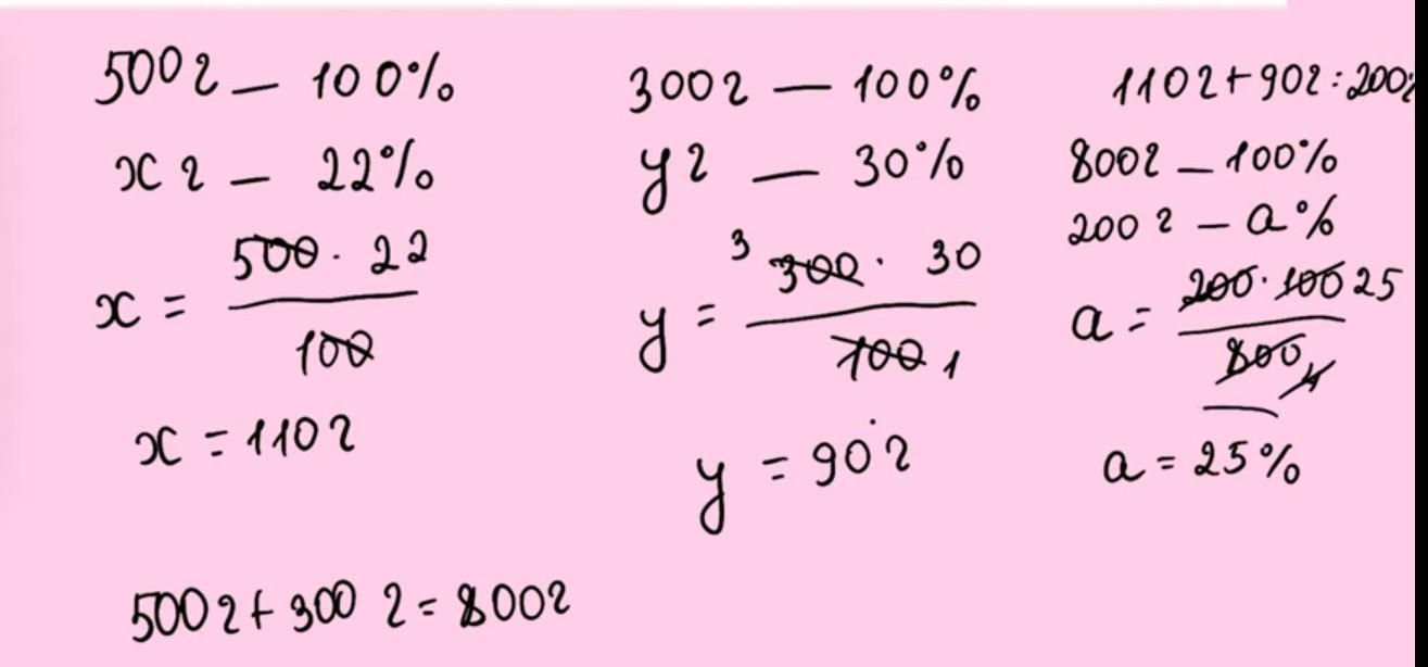 сасы 500 г, концентрациясы 22%, екінші ерітіндінің массасы 300 г, кон-