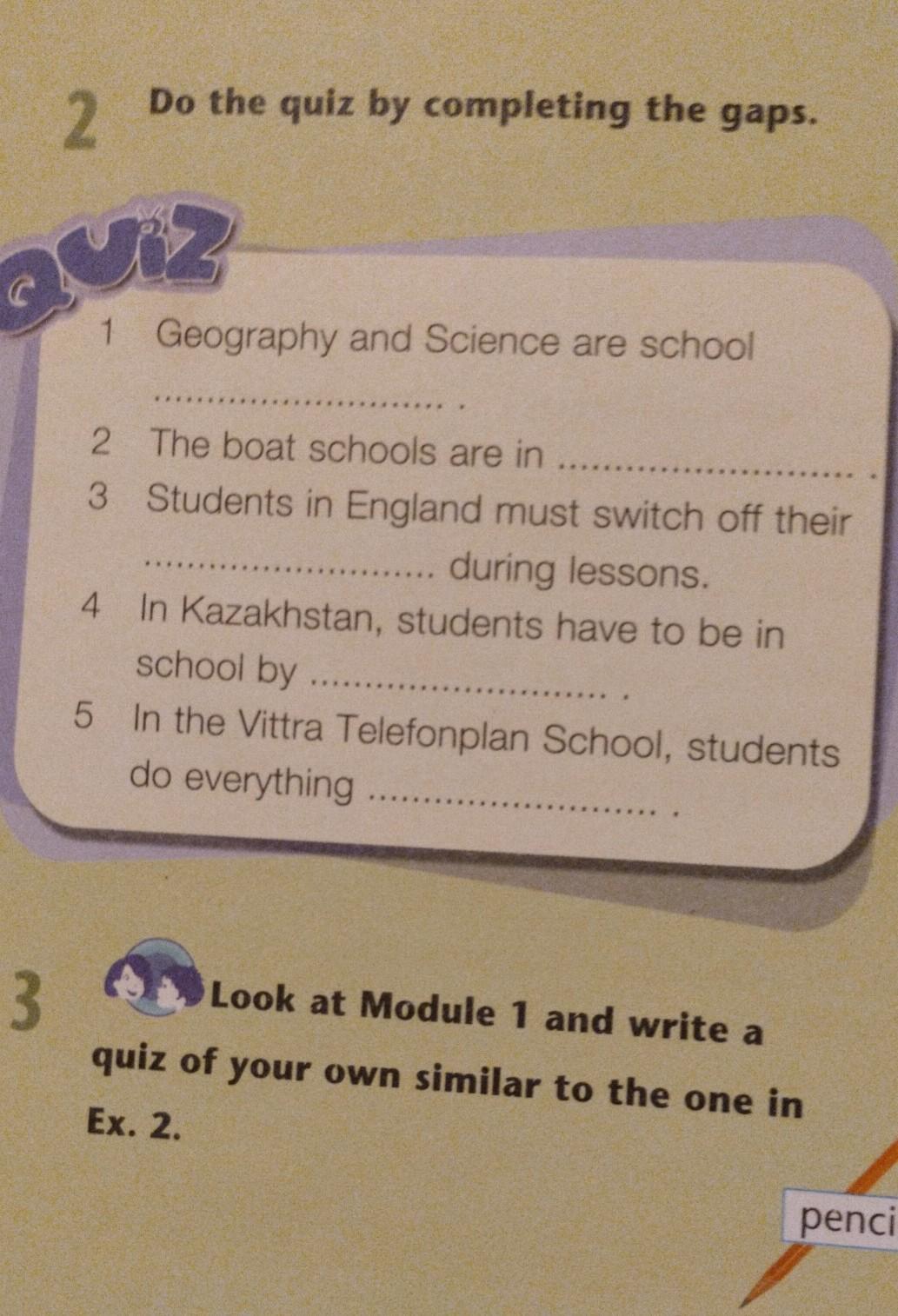 3 1 Look at Module 1 and write a quiz of your own similar to the one ir Ex. 2. там сказана что нужно сделать свое примерно как на 2 задание
