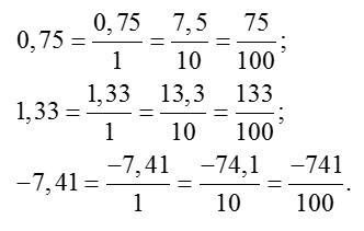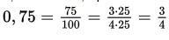 - Наконец, сокращаем полученную дробь по стандартной схеме: делим числитель и знаменатель на те числа, которым они кратны. Например, в первом примере 0,75=75/100, при этом и 75, и 100 делятся на 25. Поэтому получаем (рисунок 3).