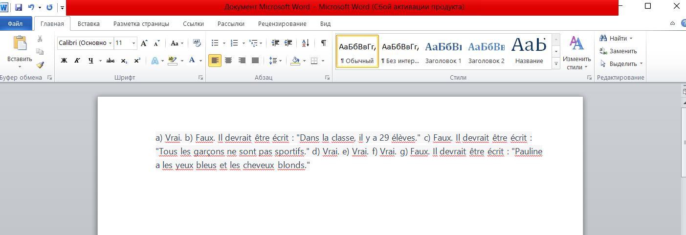 EXERCICE 1. Lis. Réponds vrai ou faux. Si c'est faux, fais une bonne phrase. a) Léo aime sa nouvelle classe. b) Dans la classe, il y 29 élèves. c) Tous les garçons sont sportifs. d) Le plus fort, c'est Pierre. e) Léo trouve que les filles sont bavardes. f) Pauline est triste. g) Pauline a les yeux bleus et les cheveux bruns. Пожалуйста, ПОМОГИТИ, НУЖНО ИМЕННО СЕГОДНЯ ДАМ 30 БАЛЛОВ, УМОЛЯЮЮ