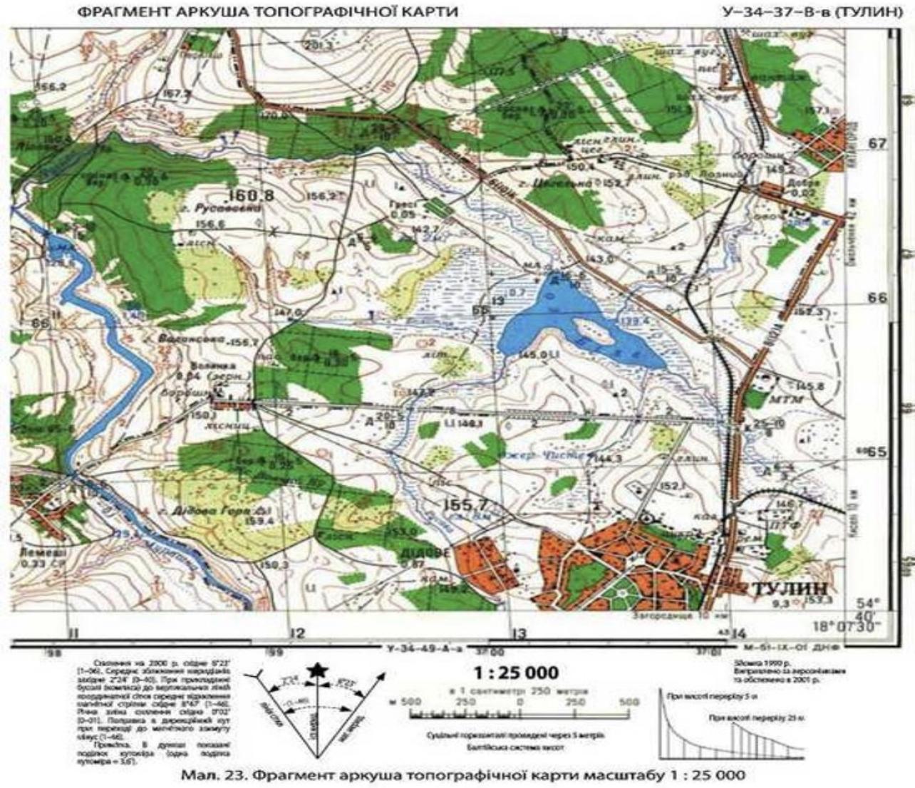 Уявіть, що ви мешкаєте в містечку Тулин. Користуючись фрагментом топографічної карти (мал. 18 на с. 33 або за прикріпленим фото) прокладіть маршрут дводенного пішохідного турпоходу, метою якого є найвища вершина місцевості. Свій шлях на карті намалюйте.