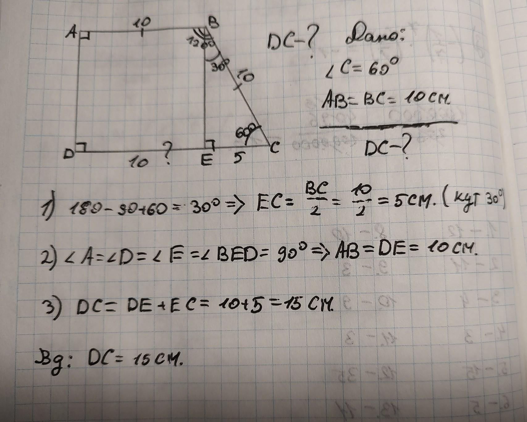 Гострий кут прямокутної трапеції 60°, більша бічна сторона і менша основа по 10см. Знайти більшу основу