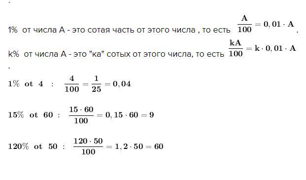 k% от числа А - это "ка" сотых от этого числа, то есть
