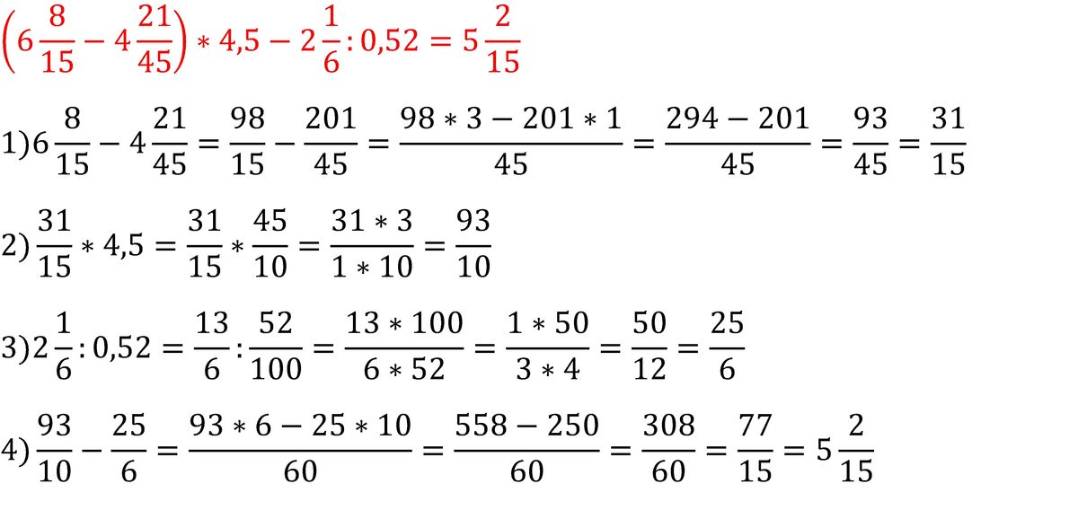 (98/15-201/45) * 4.5-(13/6:52/100)= 93/45*4.5-20.1=-10.8