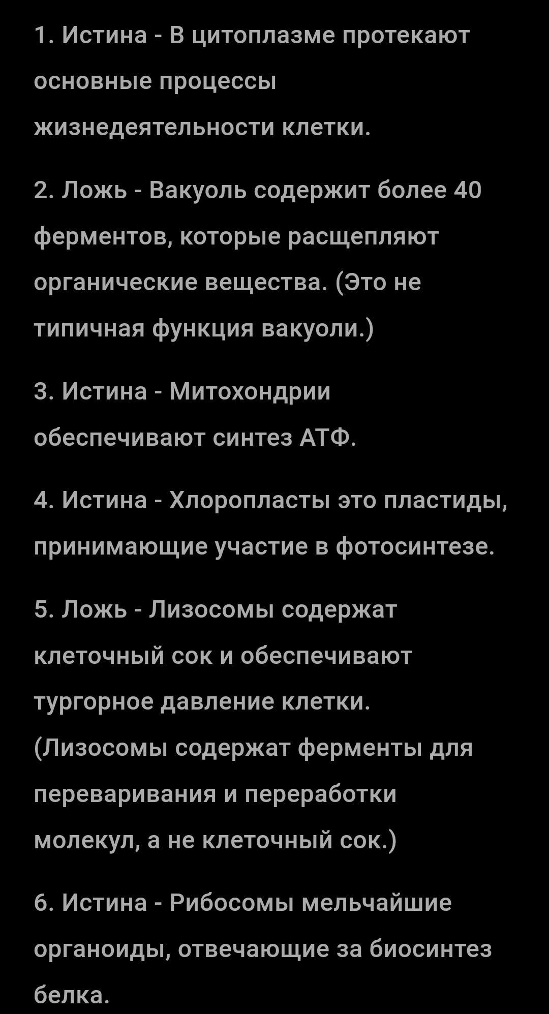 3. Определите истинность/ложность утверждений функций, выполняемых органоидами функции, выполняемые органоидами И Л 1. В цитоплазме протекают основные процессы жизнедеятельности клетки 2. Вакуоль содержит более 40 ферментов, которые расщепляют органические вещества 3. Митохондрии обеспечивают синтез АТФ 4. Хлоропласты это пластиды, принимающие участие в фотосинтезе 5. Лизосомы содержат клеточный сок и обеспечивают тургорное давление клетки 6. Рибосомы мельчайшие органоиды, отвечающие за биосинтез белка 7. Аппарат Гольджи отвечает за хранение и передачу генетической информации 8. Синтез РНК и образование субъединиц рибосом происходит в ядрышке 4. Внимательно рассмотрите рисунок. На рисунке изображена митохондрия фактическая длина митохондрии 10 мкм Линей 10