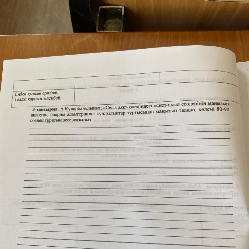 “Қалың елім, қазағым” бөлімі бойынша жиынтық бағалау тапсырмалары