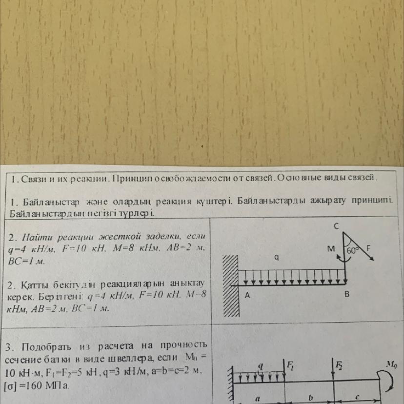 керек. Бер iлгенi: q=4 кН/м, F=10 кН. М=8